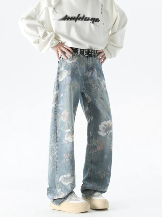 Men's Plus Size Floral Print Loose Fit Jeans