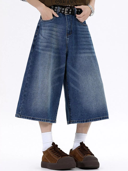 Men's Plus Size Wide Leg Cropped Jeans